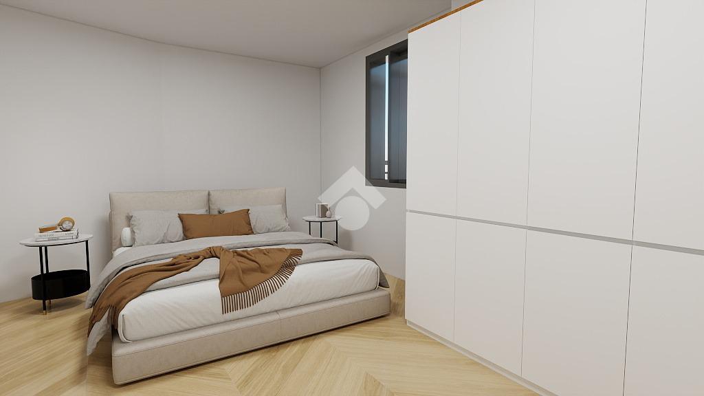 La zona notte offre una camera matrimoniale accogliente e ben proporzionata, mentre il bagno è dotato di aeratore.